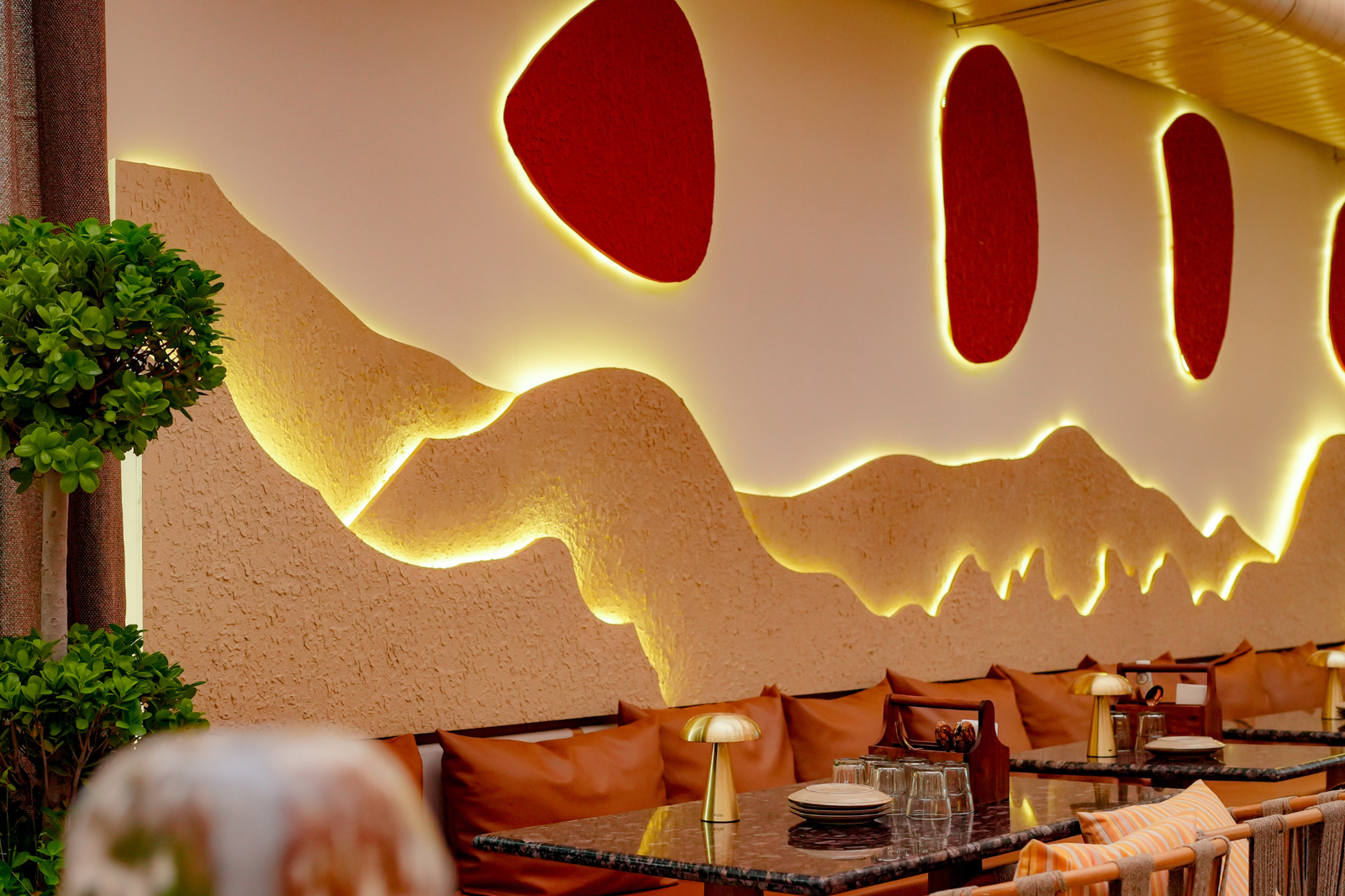 The place looks and feels great. It is designed in very delicate, organic, greek tropical interiors which was a surprise as I didn't expect that. The maintenance and service were at par with the expectation but the food was below average for me. Something as basic as fries weren't done right at all. The cold coffee was sub-par, the garlic bread was overdone and very crumbly, and over all this the prices didn't justify the food quality at all. I've had 10x times better food at a much reasonable price.